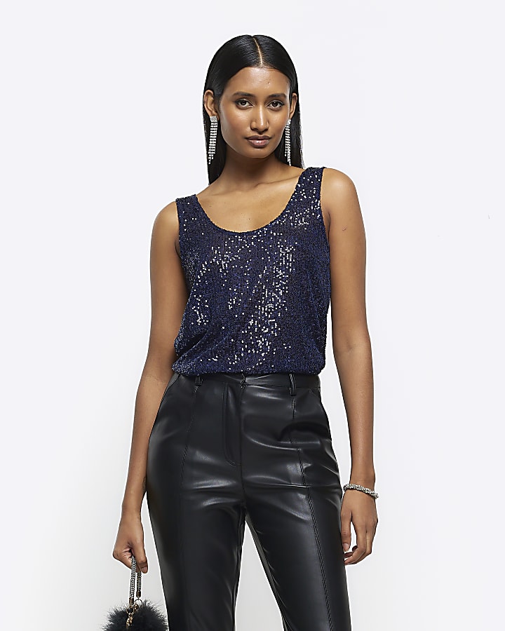 Product Name: Navy sparkly tops top